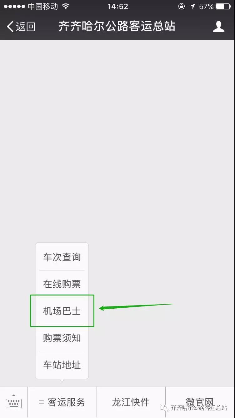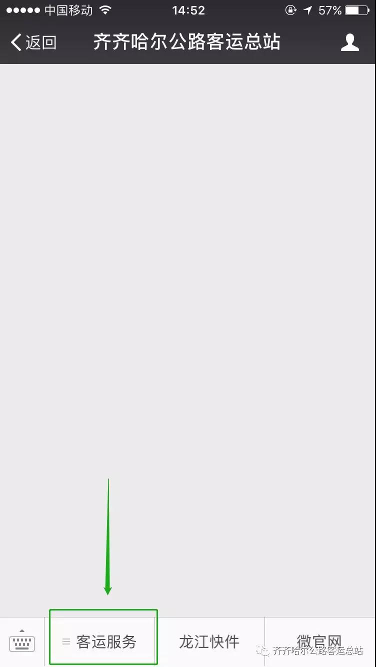 1.在微信里打開“齊齊哈爾客運(yùn)總站”公眾號(hào)