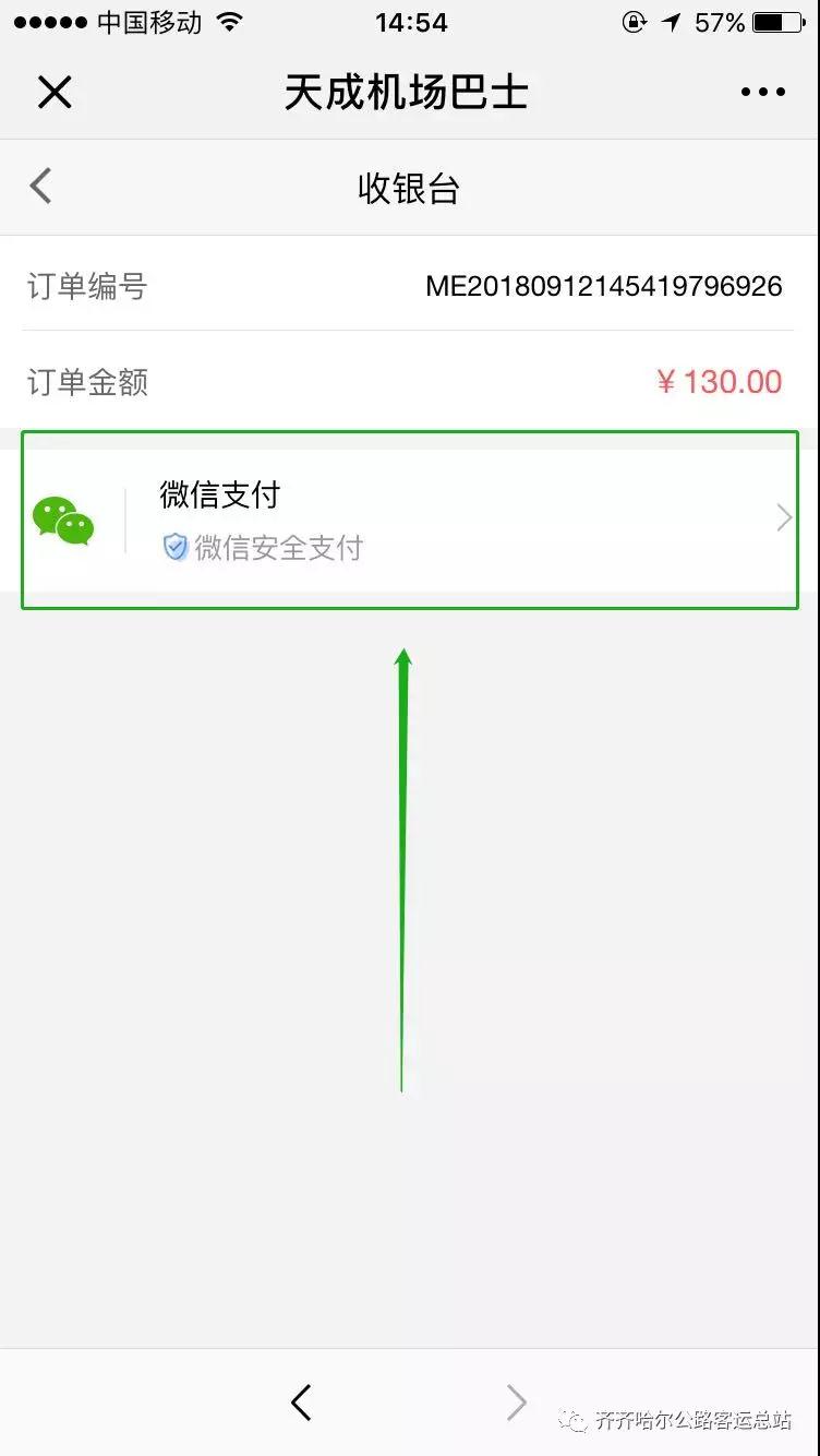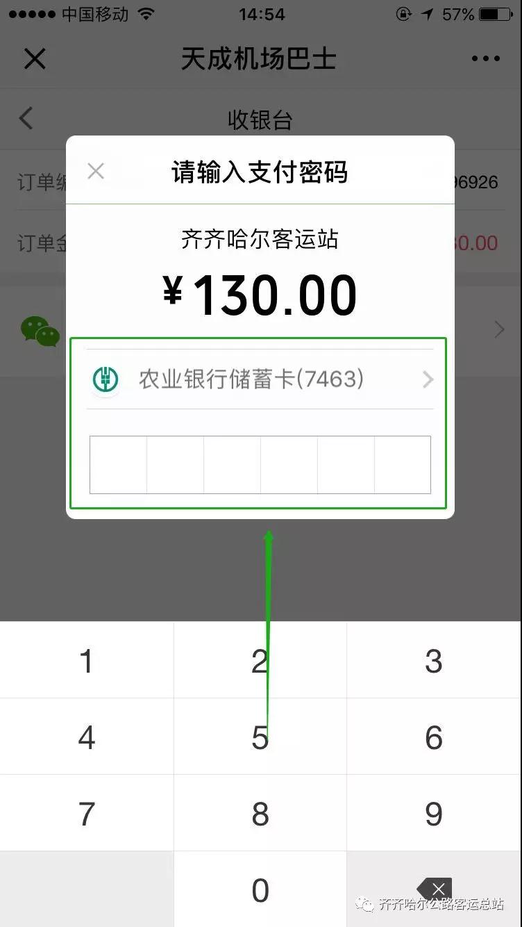 6.點(diǎn)擊微信支付。輸入支付密碼完成購(gòu)票。