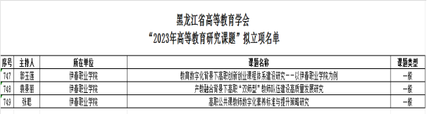伊春職業(yè)學(xué)院--黑龍江省高教學(xué)會(huì)“2023 年高等教育研究課題”擬立項(xiàng)名單