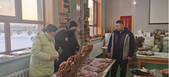 在伊春永達(dá)工藝品有限公司調(diào)研時(shí),工作人員詳細(xì)介紹了北沉香產(chǎn)品產(chǎn)業(yè)化研發(fā)的歷程。根據(jù)北沉香材質(zhì)的不同形態(tài),紋理,油脂含量等特點(diǎn),開發(fā)設(shè)計(jì)出了雕刻擺件、裝飾畫、文創(chuàng)禮品、旅游紀(jì)念品、家居家具飾品等幾大類產(chǎn)品,興安磐古繩結(jié)技藝技能大師工作室負(fù)責(zé)人于春華、伊山造物文創(chuàng)工作室負(fù)責(zé)人于添就文創(chuàng)用品原材料選用和設(shè)計(jì)等方面與工作人員進(jìn)行深入交流。