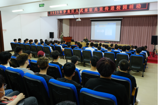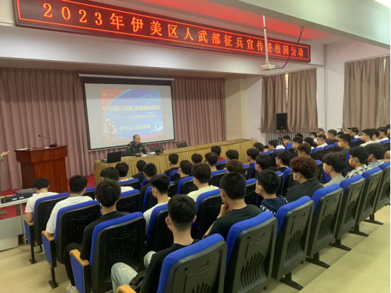 劉曉軍部長宣講的題目是《爭當明日英雄,揚威復興征程》,他以當前國家安全形勢以及國防重要意義為切入點,從“祖國召喚、實現價值”“優(yōu)撫優(yōu)待、助力成長”“條件程序、明晰嚴謹”等三個部分,圍繞2023年秋季征兵政策及新修訂的《征兵工作條例》內容,對應征入伍條件、報名流程注意事項、參軍入伍優(yōu)勢、優(yōu)撫待遇、職業(yè)化發(fā)展空間、就業(yè)升學支持政策等重點內容進行了詳細解讀。宣講內容豐富詳實、深入淺出,他強調參軍入伍對于大學生來說是一次改變命運的難得機會,是一個提升能力的成長平臺,是一段豐富多彩的人生經歷,他號召大學生們踴躍報名,參軍報國,實現人生價值,為國防建設貢獻力量。