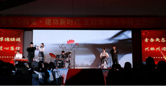 歌伴舞《上春山》讓大家感受到了春風(fēng)吹拂,春光如畫;大學(xué)生藝術(shù)團(tuán)民樂團(tuán)帶來的現(xiàn)代民樂合奏《滄海一聲笑》《刀劍如夢》,其悠揚(yáng)的旋律和激昂的節(jié)奏,給全場師生帶來美的感受;小合唱《如愿》《星辰大?!肪渚涑鲆屢谅殞W(xué)子珍惜青春年華,在創(chuàng)新創(chuàng)造中閃光,在真學(xué)真信中堅(jiān)定理想信念,讓五四精神的火炬代代傳承。