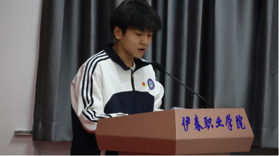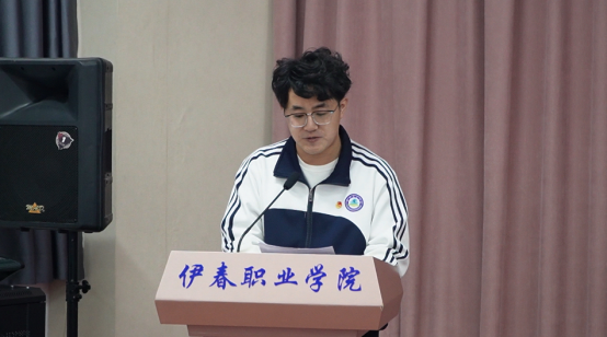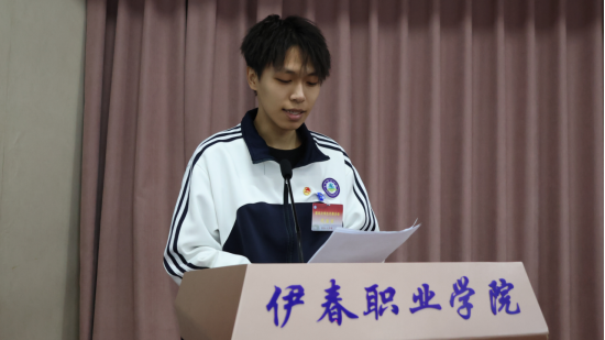 第四屆學(xué)生委員會(huì)主席團(tuán)成員孫澤寬宣讀《伊春職業(yè)學(xué)院第四次學(xué)生代表大會(huì)倡議書》