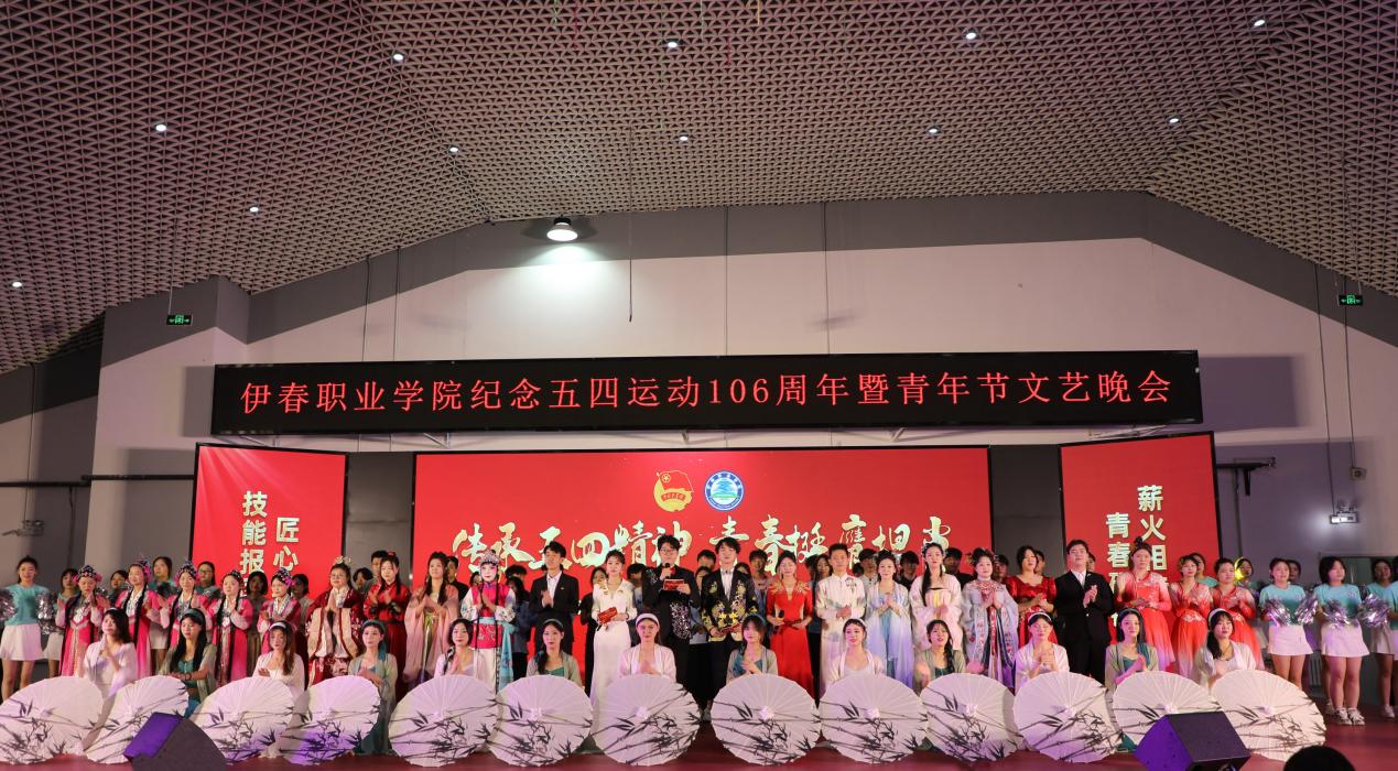 崢嶸歲月,韶光似箭;逐夢青春,風(fēng)華正茂。為紀(jì)念五四運動106周年,傳承歷久彌新的五四精神,展現(xiàn)新時代青年的青春風(fēng)采,4月29日晚,伊春職業(yè)學(xué)院舉辦“傳承五四精神 青春挺膺擔(dān)當(dāng)”紀(jì)念五四運動106周年暨青年節(jié)文藝晚會。團(tuán)市委相關(guān)領(lǐng)導(dǎo),伊春職業(yè)學(xué)院黨委班子成員,各部門負(fù)責(zé)人,二級學(xué)院(部)黨支部書記、院長及全體學(xué)工人員出席活動。來自我校近千余名師生雅集一堂,共同以藝術(shù)之名致敬歷史,以青春之力續(xù)寫華章。