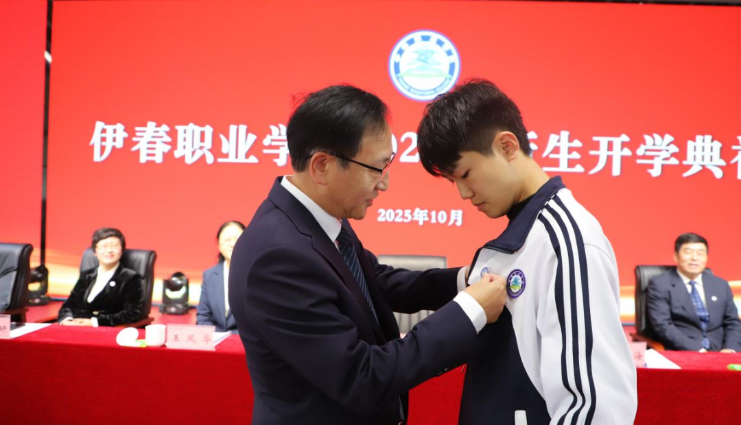 學(xué)校徽章是“伊職精神”的凝聚,是“伊職人”身份的象征,也是伊職人薪火相傳的精神共鳴、賡續(xù)奮斗的精神標(biāo)識,承載著伊職人的榮耀和使命。在校歌聲中,黨委書記韓殿君為2025級新生代表佩戴學(xué)?;照?,勉勵(lì)每一位新伊職人銘記身份、肩負(fù)使命,讓徽章的光芒時(shí)刻提醒他們以校為榮、砥礪前行,在未來的學(xué)習(xí)生涯中綻放青春風(fēng)采。