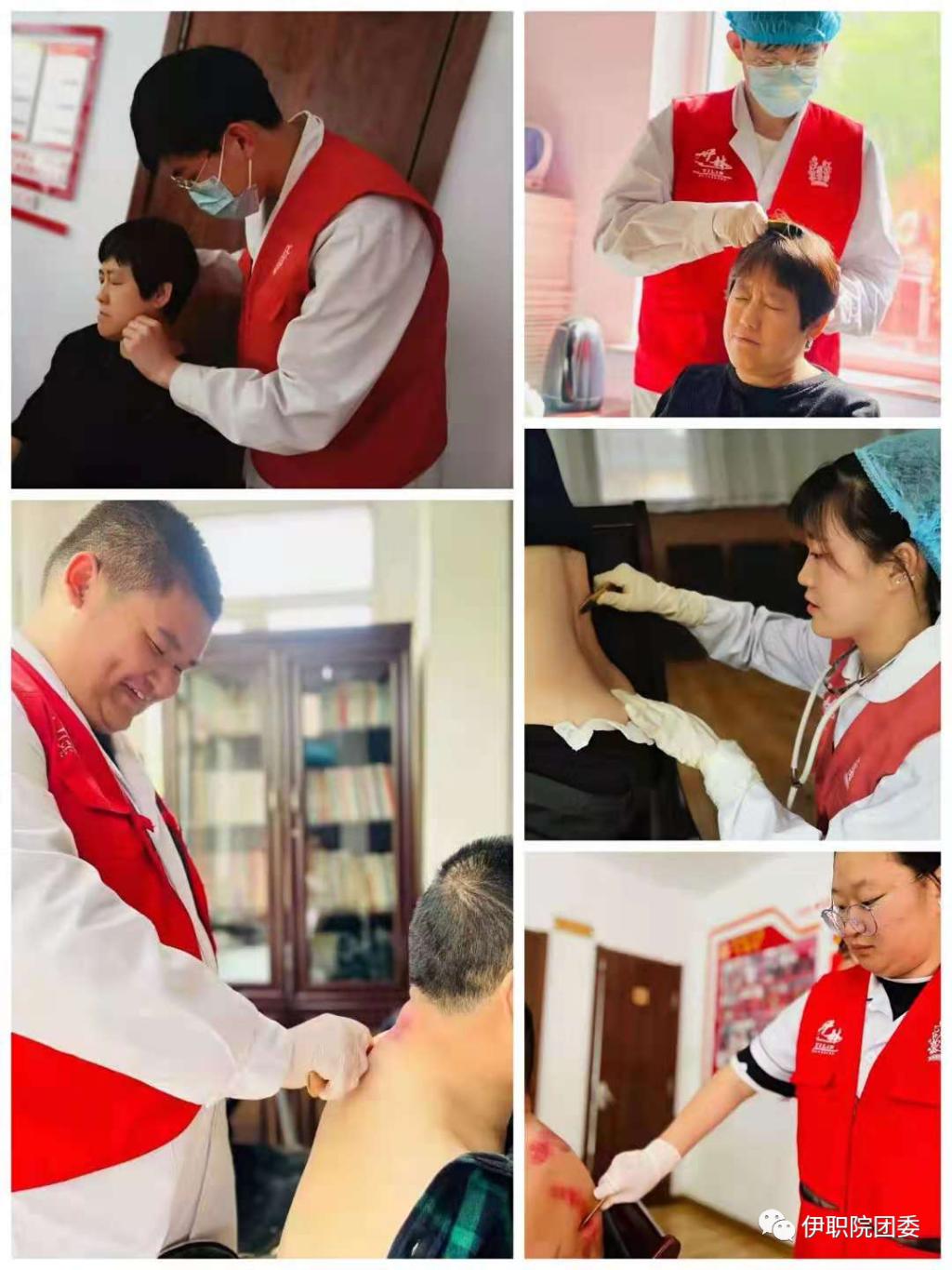 為弘揚(yáng)“奉獻(xiàn)、友愛、互助、進(jìn)步”的志愿服務(wù)精神,貫徹落實(shí)伊春職業(yè)學(xué)院黨史學(xué)習(xí)教育系列活動(dòng)方案,校團(tuán)委組織醫(yī)學(xué)技術(shù)學(xué)院志愿者開展“我為群眾辦實(shí)事”系列志愿服務(wù)活動(dòng),5月14日由醫(yī)學(xué)技術(shù)學(xué)院中醫(yī)康復(fù)技術(shù)專業(yè)教師郭珊珊帶領(lǐng)十余名專業(yè)同學(xué)參加此次志愿服務(wù)活動(dòng),我校青年志愿者們帶著專業(yè)性、實(shí)用性、技術(shù)性的中醫(yī)康復(fù)技術(shù)和滿腔的熱忱來到新欣街道辦事處所轄的新欣社區(qū)和前進(jìn)社區(qū)為轄區(qū)群眾、退休干部、孤寡老人帶來系列的中醫(yī)治療方案,同學(xué)們?cè)趯I(yè)教師的指導(dǎo)下通過“望聞問切”四診合參的方法,探求病因、病性、病位,使用刮痧、推拿、按摩、拔罐等多種治療手段,使人體達(dá)到陰陽(yáng)調(diào)和而康復(fù)。