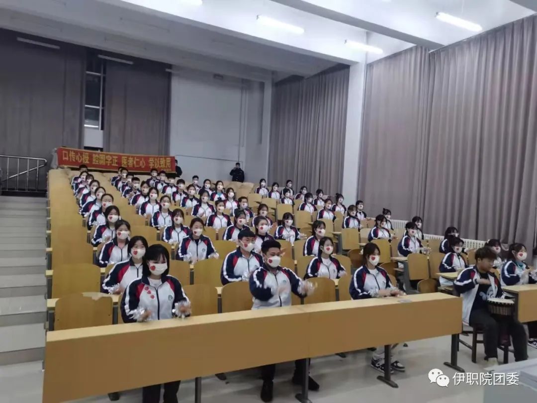 各班設(shè)計(jì)編排了形式多樣的課桌舞,既有展傳統(tǒng)文化之美、英雄報(bào)效祖國(guó)之志的《精忠報(bào)國(guó)》,有充滿童趣和歡樂(lè)的《大王叫我來(lái)巡山》,有熱烈奔放的《最好的舞臺(tái)》、《讓我們蕩起雙槳》,有贊美祖國(guó)的青春婀娜的《萬(wàn)疆》,乘風(fēng)破浪歡笑飛揚(yáng)的《天天向上》……每一曲都積極向上、朝氣蓬勃,動(dòng)作在整齊中蘊(yùn)含著音樂(lè)的美,充分展現(xiàn)了伊職青年青春飛揚(yáng)、活力四射的精神面貌,拍桌舞的形式讓學(xué)生們?cè)诳鞓?lè)的氛圍里,感受到音樂(lè)及節(jié)奏帶來(lái)的肢體韻律上的享受,培養(yǎng)學(xué)生的樂(lè)感感知能力,提升審美素養(yǎng)、陶冶情操、溫潤(rùn)心靈、激發(fā)創(chuàng)新創(chuàng)造活力,構(gòu)建德智體美勞全面培養(yǎng)的教育體系。