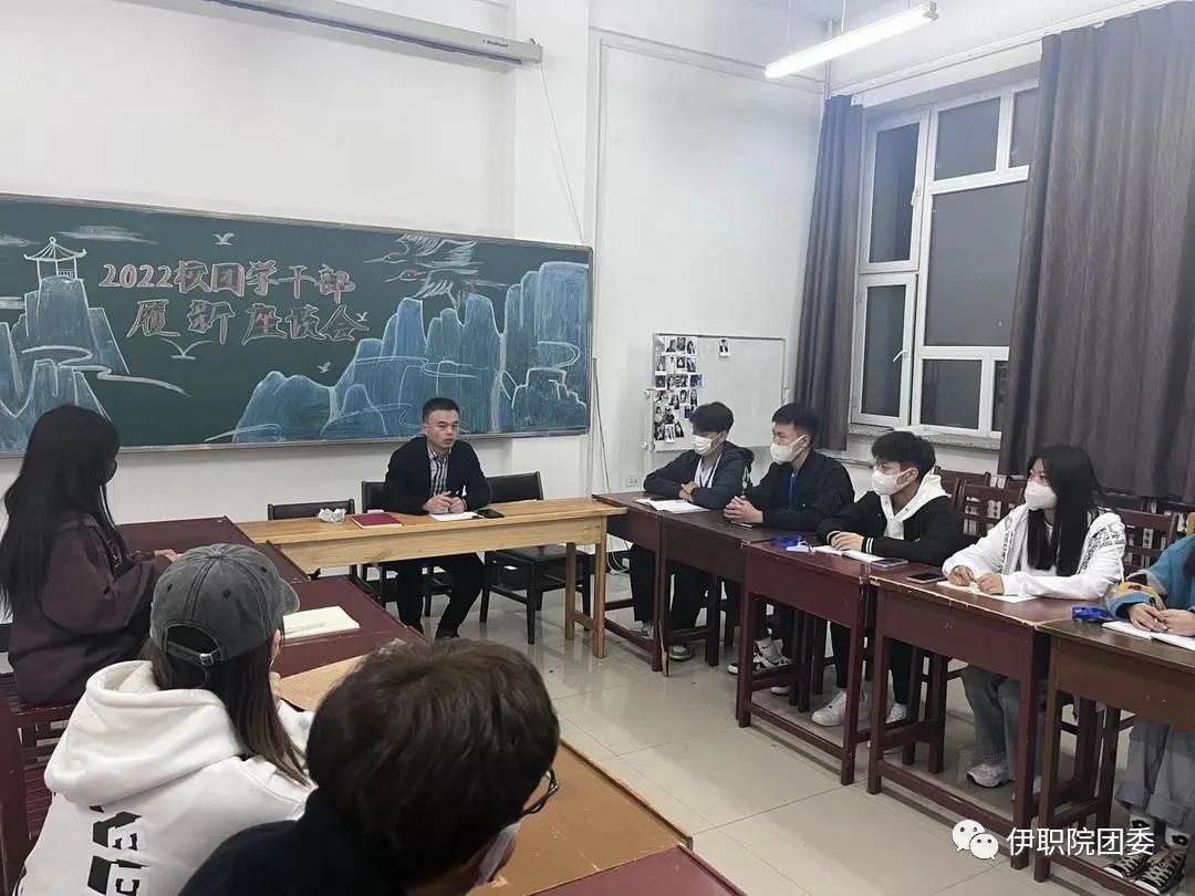 根據(jù)我校校級(jí)團(tuán)學(xué)干部實(shí)際情況, 為了科學(xué)化團(tuán)學(xué)組織機(jī)構(gòu),合理化人員配置,明確工作職能,進(jìn)一步加強(qiáng)團(tuán)學(xué)干部的服務(wù)意識(shí),提高團(tuán)學(xué)干部的組織能力,明確學(xué)生干部工作目標(biāo),校團(tuán)委書(shū)記——丁利偉于9月29日在1號(hào)教學(xué)樓118會(huì)議室主持召開(kāi)了2022年度團(tuán)學(xué)干部履新座談會(huì)。