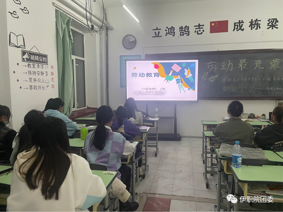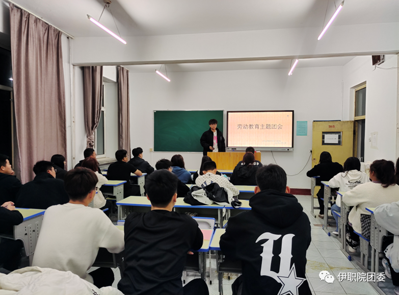各二級學(xué)院同時(shí)相繼開展了主題班會,旨在幫助學(xué)生樹立正確的勞動觀,讓勞動成為伊職學(xué)子的生活方式,同時(shí)牢固樹立“勞動最光榮、勞動最崇高、勞動最偉大、勞動最美麗”的觀念。團(tuán)日活動中,通過講解PPT的形式帶領(lǐng)同學(xué)們了解了勞動與青春的聯(lián)系。