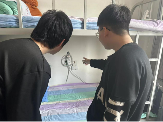 走進宿舍,叮囑同學們要加強安全意識,注意宿舍用電安全,提醒同學們時刻注意用電安全問題,強調(diào)“人走斷電”意識,把危險扼殺在搖籃里。同時也開展相關(guān)主題班會,進一步加強學生時刻關(guān)注用電問題。