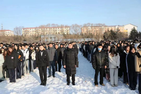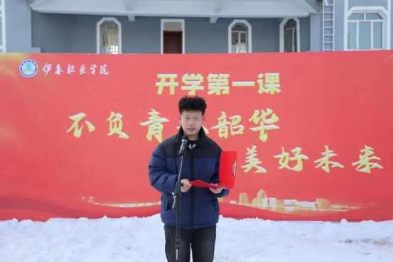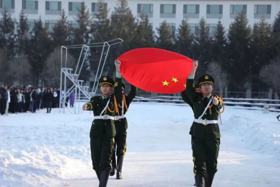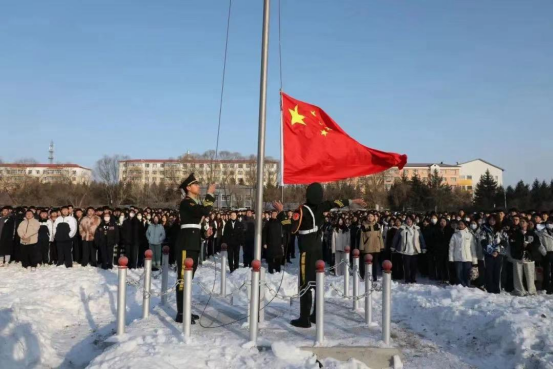 首先,學(xué)生代表“2021年十佳新時代龍江青年”“2023黑龍江省見義勇為英雄”齊海權(quán)同學(xué)在國旗下發(fā)言。