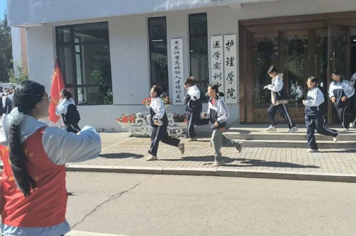 默哀結(jié)束后,大一師生進(jìn)行了國(guó)防疏散演練,大家迅速而有序地從教學(xué)樓撤離,按照預(yù)定路線集結(jié)到安全地帶。