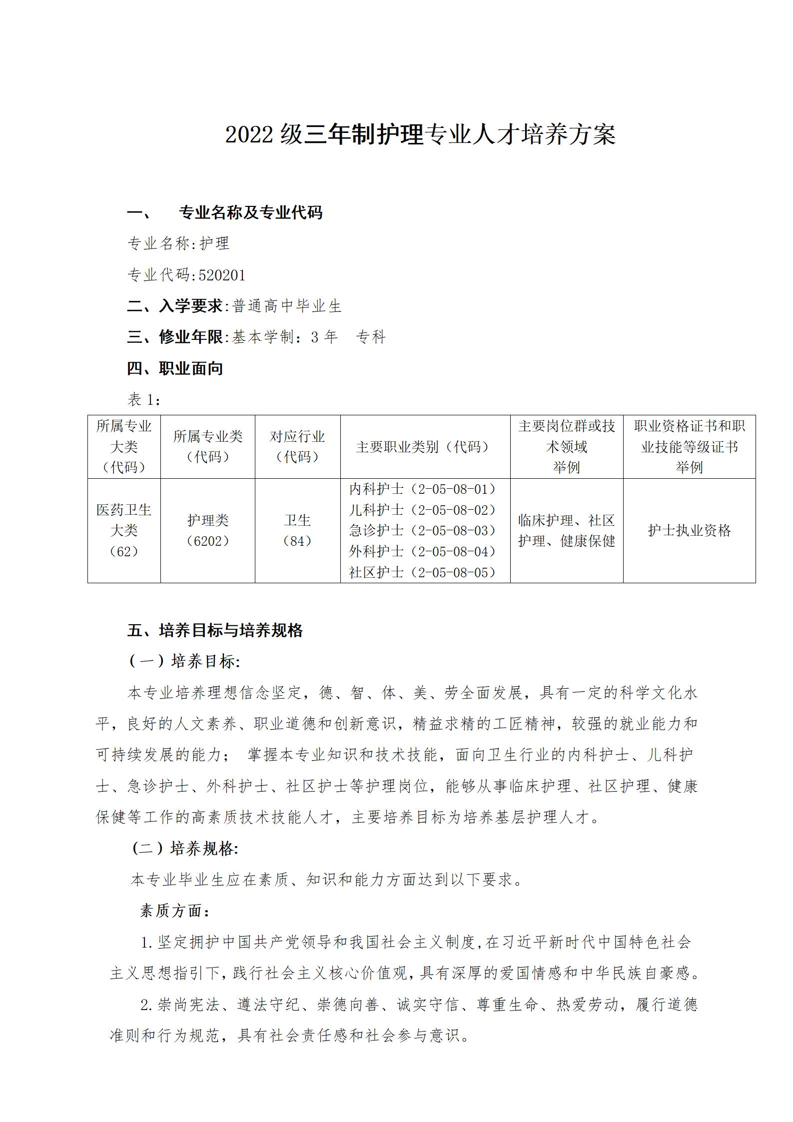 2022級三年制護(hù)理專業(yè)人才培養(yǎng)方案