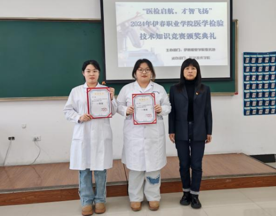2024年12月份醫(yī)學技術學院中醫(yī)康復技術專業(yè)、藥學專業(yè)以及醫(yī)學檢驗技術專業(yè)均順利地完成了各自領域的知識技能大賽。這些大賽不僅為學生們搭建了展示專業(yè)技能和知識水平的舞臺,更像一把鑰匙,引領他們深入探索專業(yè)知識,激發(fā)了他們學習的無限熱情。12月23日,這一系列大賽的頒獎活動隆重舉行,醫(yī)學技術學院院長韓金華、副院長許紅柳出席,為三個專業(yè)的優(yōu)秀學生頒發(fā)了獎項,以表揚他們在大賽中取得的優(yōu)異成績。