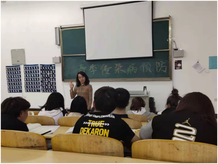 各班班會(huì)課上,老師利用互動(dòng)和競答等多種方式向?qū)W生介紹春季常見的傳染?。毫鞲?、流腦、腮腺炎、諾如病毒、手足口病的病癥及其危害進(jìn)行講解。
