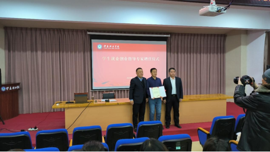 講座期間,我校招生就業(yè)處處長孫曉會、副處長王巍代表我校向徐立志老師頒發(fā)聘書,特聘為我校學(xué)生就業(yè)創(chuàng)業(yè)指導(dǎo)專家。