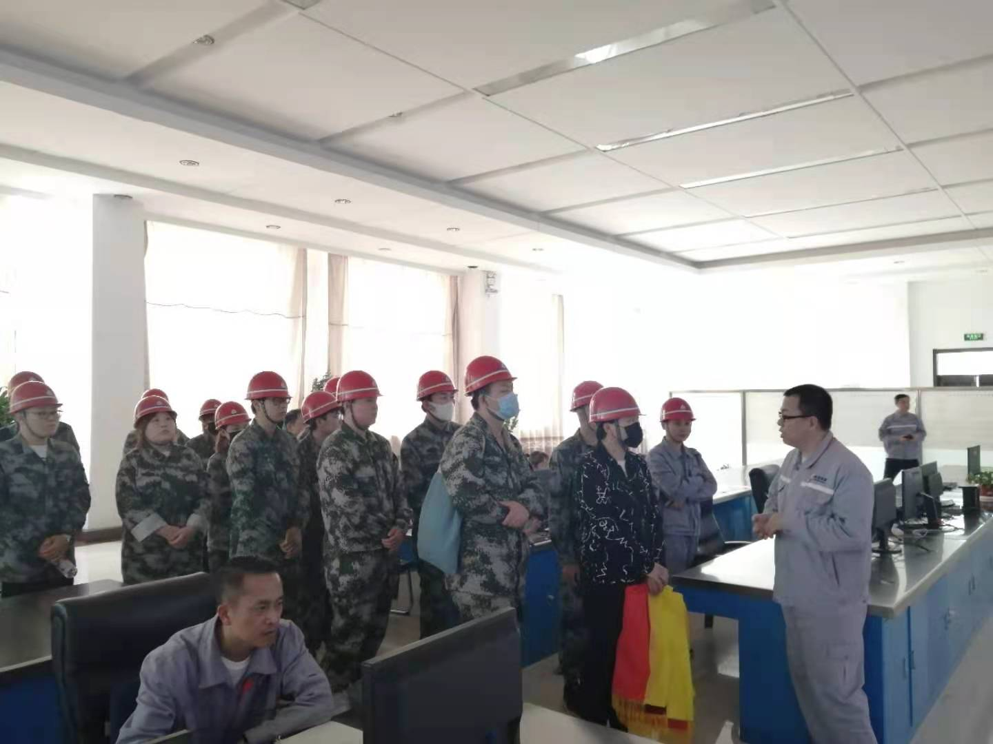 學(xué)生們在五號高爐控制室參觀現(xiàn)場