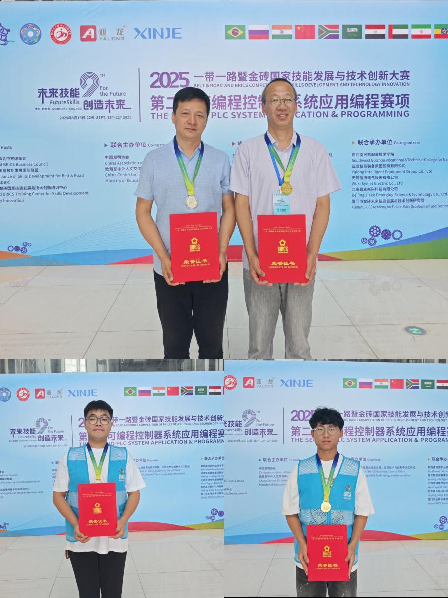 近日,2025“一帶一路”暨金磚國(guó)家技能發(fā)展與技術(shù)創(chuàng)新大賽第二屆可編程控制器系統(tǒng)應(yīng)用編程賽項(xiàng)在黔西南民族職業(yè)學(xué)院舉行。我院選派的兩組選手分獲一等獎(jiǎng)和二等獎(jiǎng)。