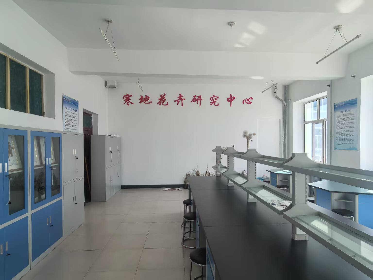 該實(shí)訓(xùn)室主要配合《森林植物》、《森林植物實(shí)訓(xùn)》等課程完成室內(nèi)實(shí)踐教學(xué)任務(wù),同時(shí)作為寒地花卉研究中心,承擔(dān)小興安嶺地區(qū)花卉植物的育種和科研工作。主要儀器設(shè)備:實(shí)驗(yàn)室操作臺(tái)、手持電子顯微鏡、標(biāo)本展柜、過(guò)塑機(jī)、光學(xué)顯微鏡等。