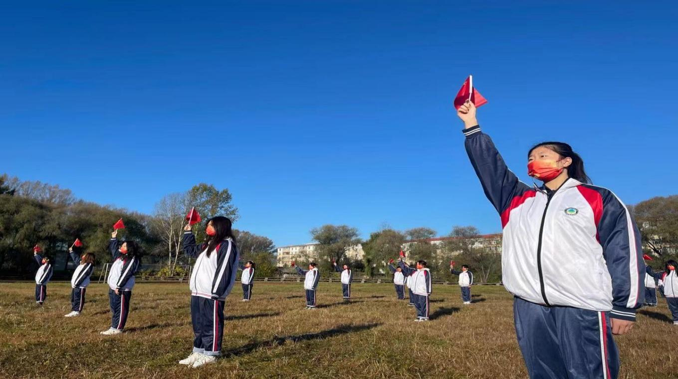 升旗儀式結(jié)束后,師生一起,揮舞著手中的小紅旗,與國旗同框,向祖國告白,讓愛與祖國同在。師生們用最質(zhì)樸的方式、純樸的感情,表達著愛黨、愛國、愛家、愛校之情,為新中國成立72周年送上祝福。