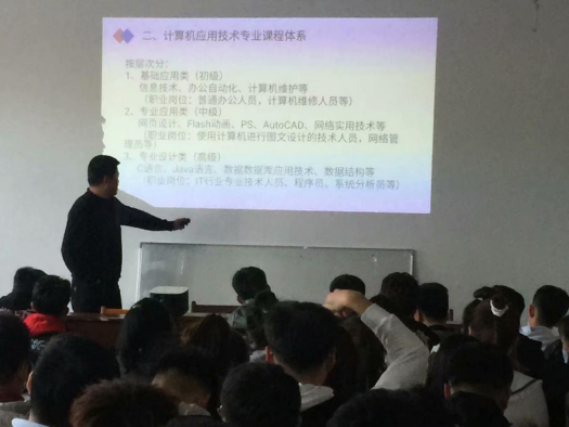賈玉罡給新生詳細(xì)地進(jìn)行了專業(yè)教育,生動形象的介紹了計算機(jī)相關(guān)專業(yè)課程體系及學(xué)習(xí)方法,為學(xué)生們做了職業(yè)規(guī)劃,即應(yīng)該學(xué)什么、怎么學(xué)、學(xué)好后干什么。