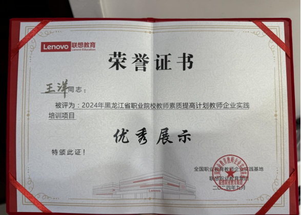 為進(jìn)一步提升學(xué)院教師的實(shí)踐教學(xué)水平,8月12日——9月8日,我院王洋、李昱婷兩位教師赴聯(lián)想職業(yè)教育集團(tuán)參加為期28天的2024年黑龍江省職業(yè)院校教師素質(zhì)提高計(jì)劃教師企業(yè)實(shí)踐培訓(xùn)項(xiàng)目。