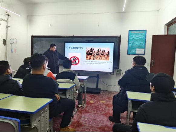 班會(huì)上,各班班長(zhǎng)圍繞恐怖主義的定義、特點(diǎn)及危害等方面展開(kāi)詳細(xì)的講解,通過(guò)播放圖片、視頻等方式讓同學(xué)們直觀地感受到恐怖活動(dòng)的殘酷性和破壞性。