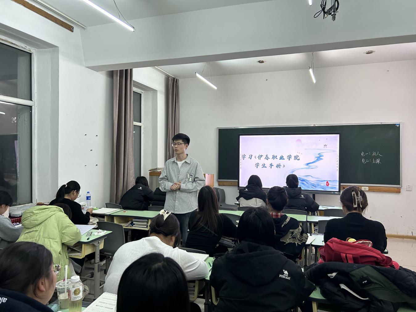 為幫助新生樹立遵規(guī)守紀的意識,10月16日晚,我院輔導(dǎo)員和團學(xué)干部先后組織新生學(xué)習(xí)《伊春職業(yè)學(xué)院學(xué)生手冊》,幫助新生掌握學(xué)校的規(guī)章制度、獎懲機制、教學(xué)管理、日常行為規(guī)范等內(nèi)容,引導(dǎo)新生自覺樹立規(guī)則意識。