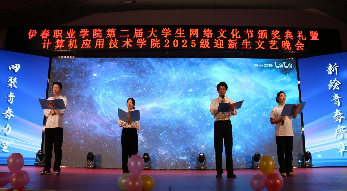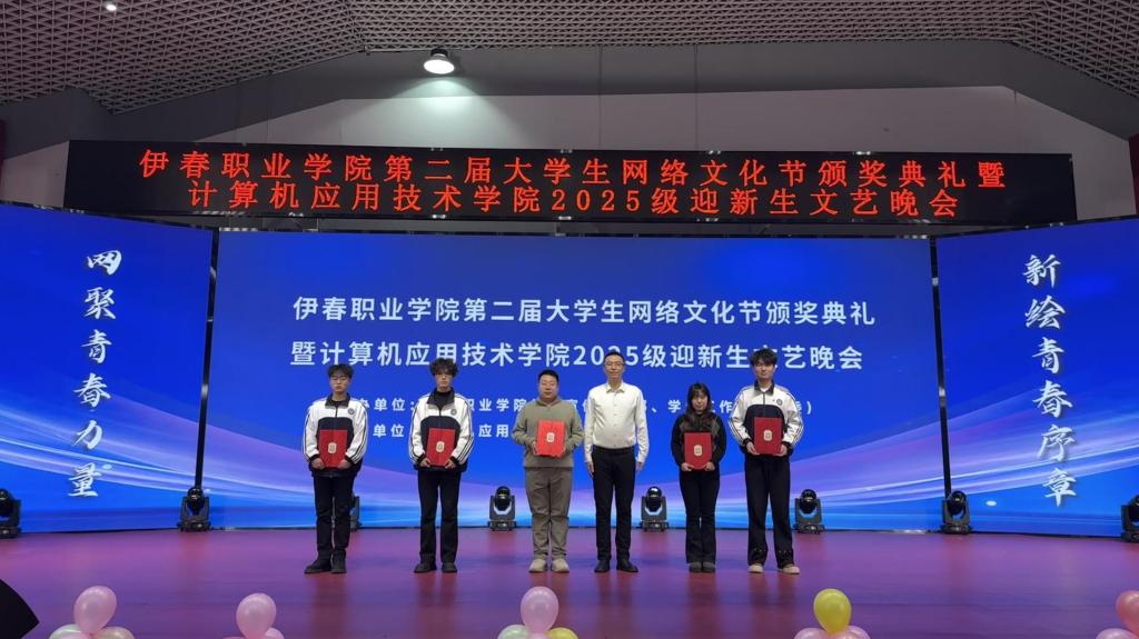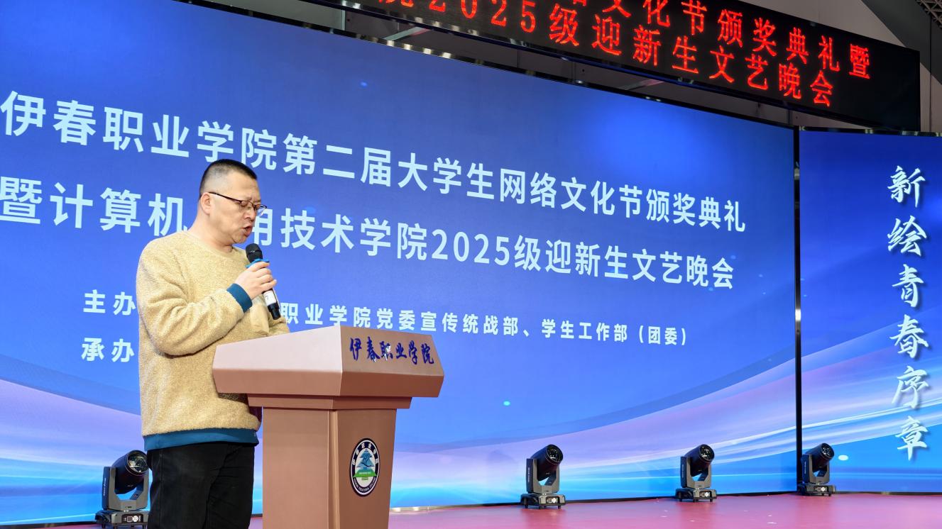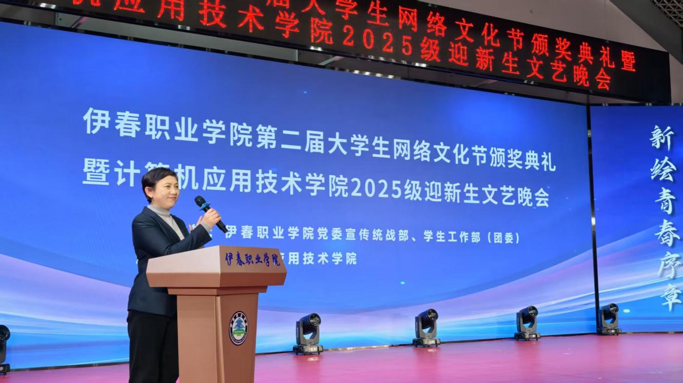 青春筑夢綻芳華,網(wǎng)聚力量啟新程。12月3日晚,伊春職業(yè)學(xué)院第二屆大學(xué)生網(wǎng)絡(luò)文化節(jié)頒獎典禮暨計算機(jī)應(yīng)用技術(shù)學(xué)院2025級迎新生文藝晚會在醫(yī)學(xué)實訓(xùn)樓五樓興安學(xué)堂圓滿落幕。校黨委委員、宣傳統(tǒng)戰(zhàn)部部長節(jié)楊,學(xué)生工作部部長張楊,校團(tuán)委書記楊志剛,學(xué)生工作部副部長趙喆,計算機(jī)應(yīng)用技術(shù)學(xué)院黨支部書記王洪錦,院長賈玉罡,副書記馬良,副院長孫偉偉及我院全體師生共同觀看此次晚會。