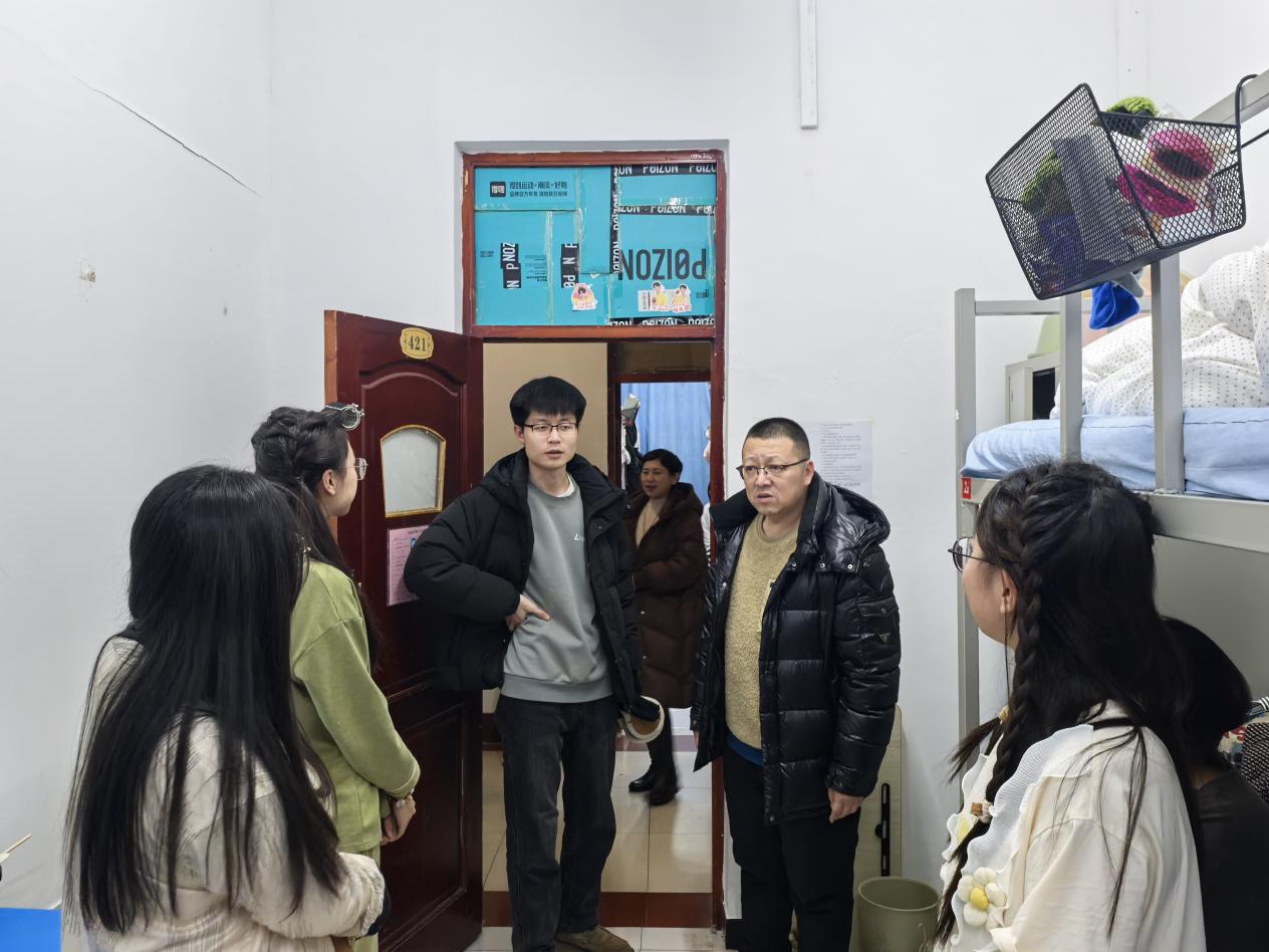 為強化學(xué)生離校前宿舍的安全管理、關(guān)心學(xué)生期末學(xué)習(xí)和生活狀態(tài),12月25日晚,我院黨支部書記王洪錦,副書記馬良,輔導(dǎo)員劉闖、孔令輝先后深入第四學(xué)生公寓、第八學(xué)生公寓,開展期末宿舍走訪活動。