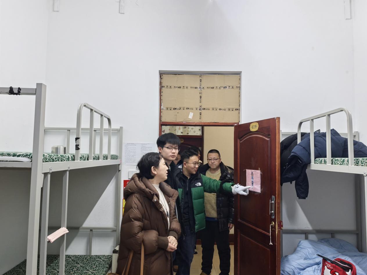 走訪過程中,老師們仔細(xì)查看了宿舍衛(wèi)生環(huán)境與用電安全情況,并叮囑同學(xué)們在考試期間要合理安排作息,離校時要注意個人財物安全,務(wù)必鎖好門窗,將貴重物品妥善保管,假期遇到困難及時與輔導(dǎo)員溝通。