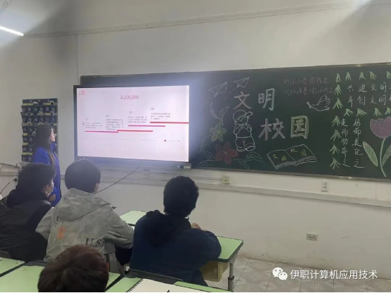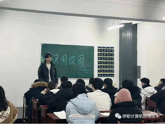“文明從你我做起,伊職因你而美麗。”通過(guò)本次主題班會(huì),同學(xué)們了解并學(xué)習(xí)了大學(xué)生行為準(zhǔn)則,力爭(zhēng)做一個(gè)遵紀(jì)守法愛(ài)護(hù)文明的當(dāng)代大學(xué)生。同學(xué)們的思想教育和價(jià)值引領(lǐng)得到了加強(qiáng),規(guī)矩意識(shí)、責(zé)任意識(shí)也得到了提高。
