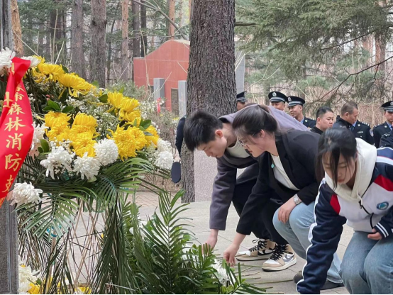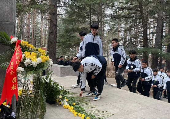 松柏蒼翠映陵園,豐碑矗立懷英魂。在紀(jì)念碑下學(xué)生代表全體肅立,默哀三分鐘,深切緬懷在小興安嶺這片英雄的熱土上奉獻(xiàn)一生的革命先烈,深深表達(dá)著每個(gè)青年“生逢盛世當(dāng)有為”的決心和感恩之情。
