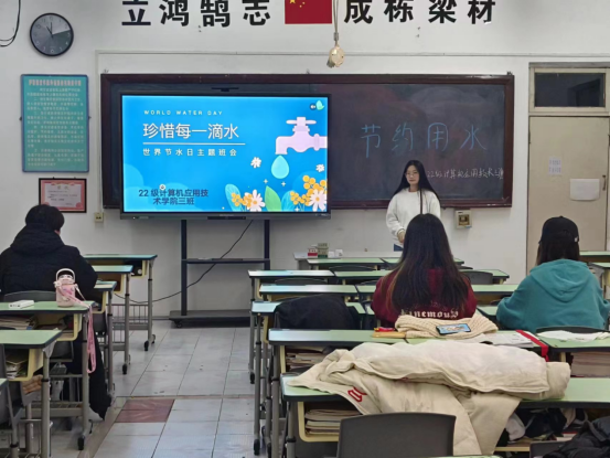 水乃萬物之母、生存之本、文明之源,節(jié)約用水,要從身邊的每一件小事做起,從點(diǎn)點(diǎn)滴滴做起。在班會(huì)上,各班通過圖片、視頻等方式,從認(rèn)識(shí)水資源、節(jié)約用水的重要性和怎樣節(jié)約水資源三個(gè)方面層層深入,帶領(lǐng)同學(xué)們從身邊的“水”入手,逐步了解水的種類、用途等,同時(shí)也了解了我國(guó)如今水資源短缺的現(xiàn)狀。