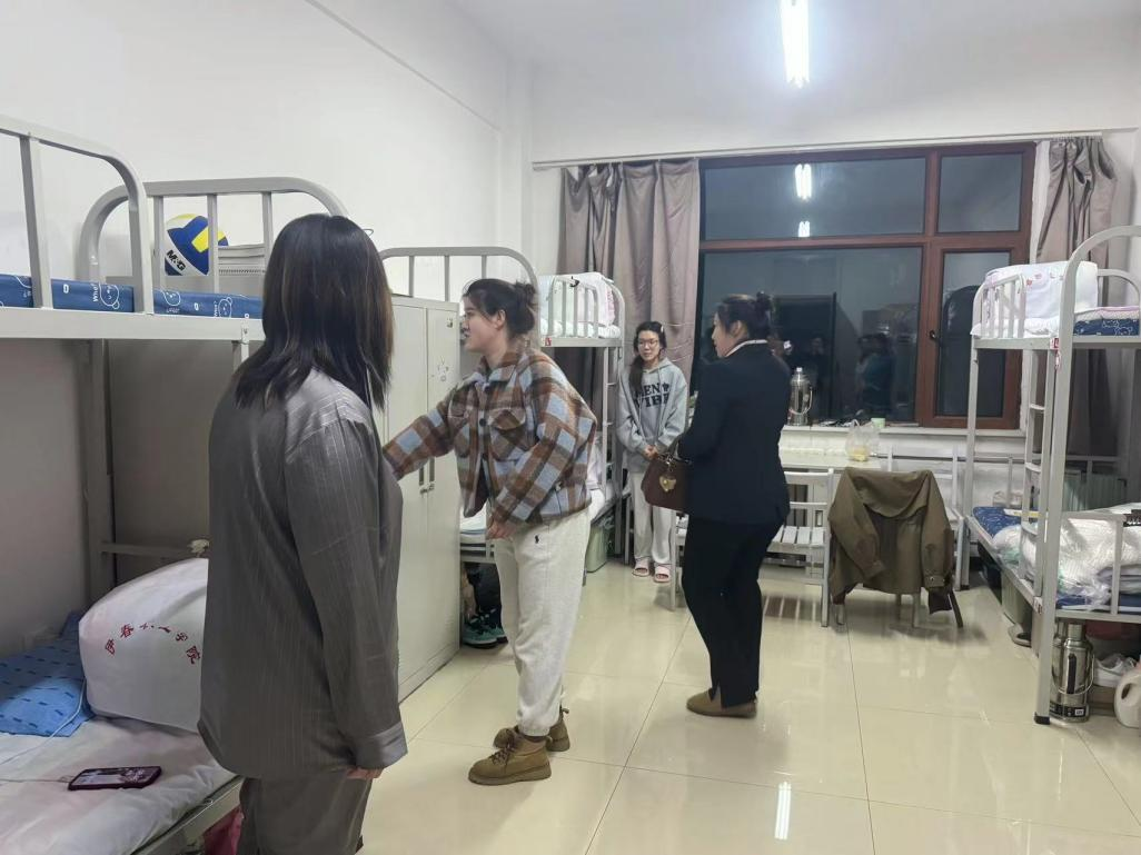 “殷殷囑托從不厭,最是關(guān)愛暖人心”。寢室生活是校園生活的重要組成部分,我院始終把學(xué)生公寓作為開展學(xué)生思政工作和日常管理的重要育人陣地,定期對學(xué)生宿舍進(jìn)行走訪,全面排查宿舍安全隱患,調(diào)研掌握學(xué)生思想動態(tài),更好地拉近老師和同學(xué)們之間的聯(lián)系,扎實(shí)推進(jìn)安全隱患排查工作,共同營造一個良好的學(xué)習(xí)和生活環(huán)境。