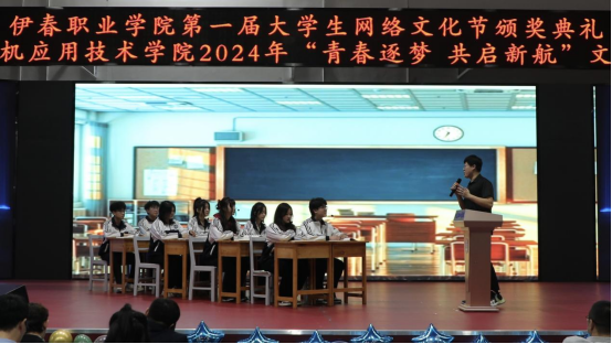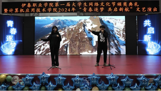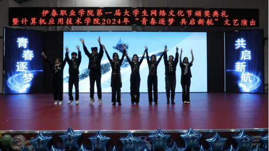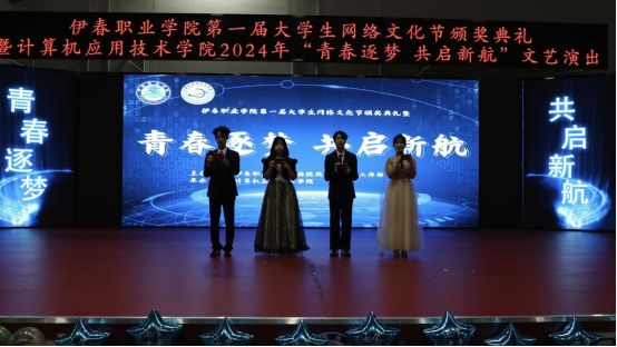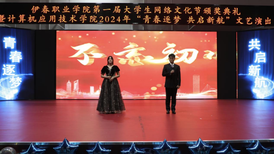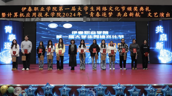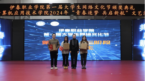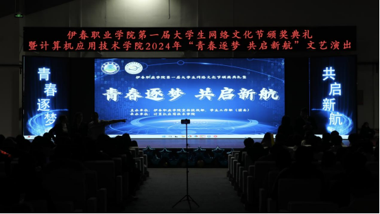12月12日晚,伊春職業(yè)學(xué)院第一屆大學(xué)生網(wǎng)絡(luò)文化節(jié)頒獎(jiǎng)典禮暨計(jì)算機(jī)應(yīng)用技術(shù)學(xué)院2024年“青春逐夢(mèng) 共啟新航”文藝演出在興安學(xué)堂圓滿落幕。校黨委委員、宣傳統(tǒng)戰(zhàn)部部長(zhǎng)節(jié)楊,學(xué)生工作部部長(zhǎng)張楊、師范學(xué)院黨支部書記金鈴玲、獲獎(jiǎng)師生代表及我院全體師生共同參加此次活動(dòng)。