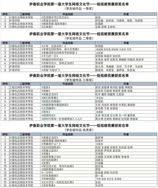 6月1日——6月30日伊春職業(yè)學院第一屆大學生網(wǎng)絡文化節(jié)第一階段短視頻競賽共有101部作品參與角逐。