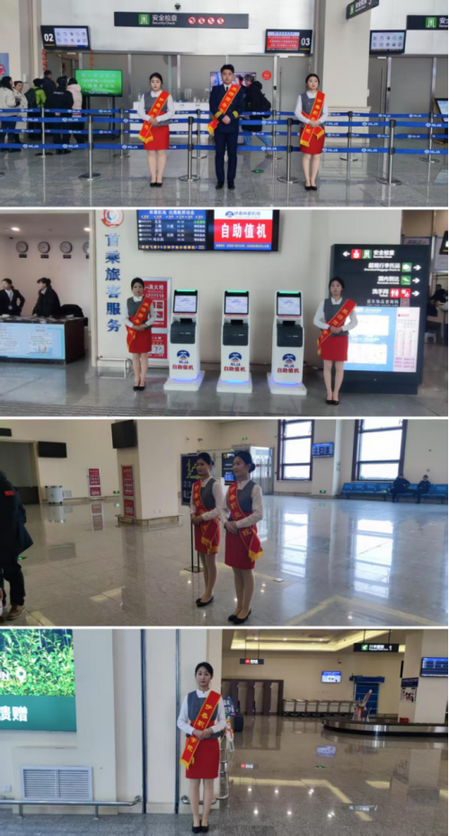 上午,志愿者們早早地抵達伊春林都機場,與機場工作人員對接后,按照機場工作崗位服務流程分成了引導咨詢組、秩序維護組、特殊旅客幫扶組和值機助理組等四個服務組,之后志愿者們投入到了緊張而有序的服務工作中。