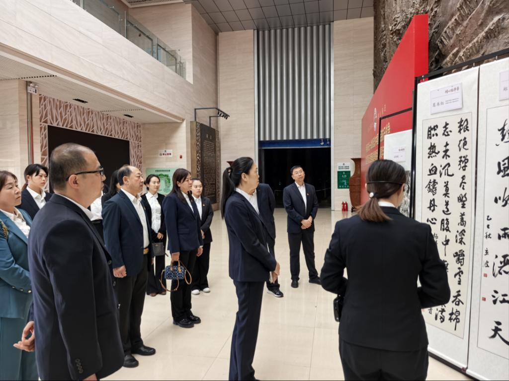 在講解員的引導講解下,大家首先參觀了“紀念中國人民抗日戰(zhàn)爭暨世界反法西斯戰(zhàn)爭勝利80周年”書畫展區(qū)。一幅幅筆力遒勁的書法作品、一卷卷生動鮮活的繪畫佳作,生動再現(xiàn)了東北抗聯(lián)將士在伊春林區(qū)浴血奮戰(zhàn)的崢嶸歲月。參觀的教師們不時停下腳步,結(jié)合畫作交流感悟,從筆墨丹青中深刻感受先輩先烈在極端艱苦環(huán)境中頑強不屈的斗爭意志,進一步深化了對中國共產(chǎn)黨在全民族抗戰(zhàn)中發(fā)揮核心引領作用的認識。