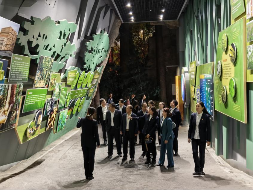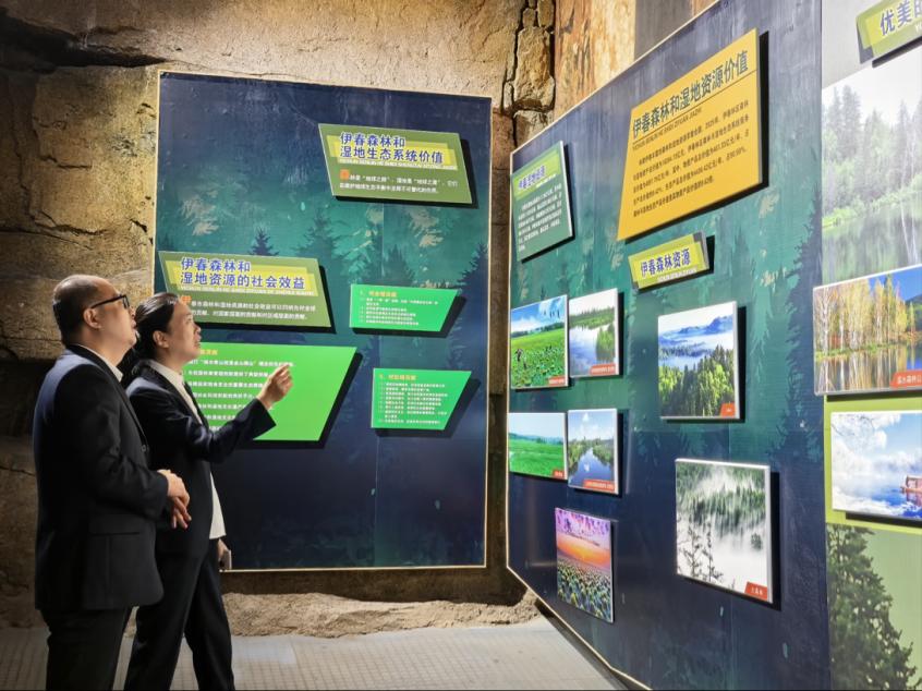 隨后,一行人進入森林博物館展廳,深入了解伊春林區(qū)從“伐木經(jīng)濟”到“生態(tài)保護”再到“綠色轉(zhuǎn)型”的發(fā)展歷程。從早期林業(yè)工人使用的鋸斧工具、記錄林區(qū)開發(fā)的老照片,到如今展現(xiàn)“綠水青山就是金山銀山”實踐成果,大家全方位感受伊春在生態(tài)保護與產(chǎn)業(yè)協(xié)同發(fā)展中取得的成績。