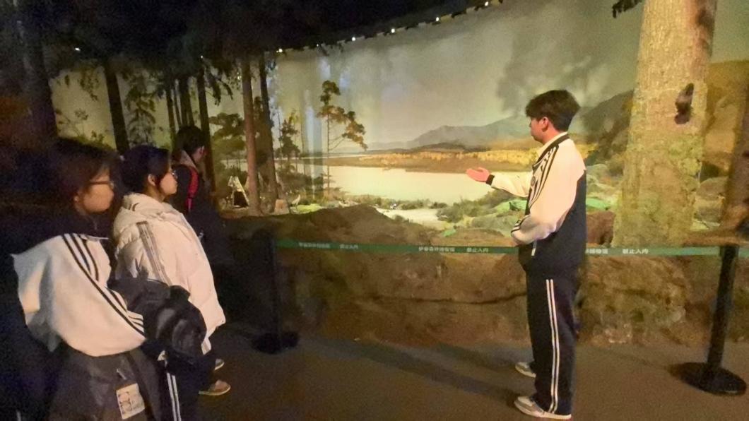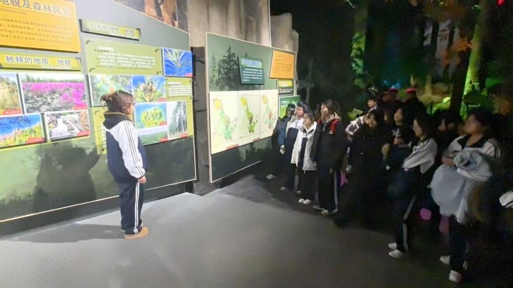 研學環(huán)節(jié)結束后,學生分組在七大展區(qū)開展模擬講解實踐。各小組分別圍繞紅松資源特性、山核桃瓶的文化寓意、中華秋沙鴨等珍稀物種保護、本地特色景觀推介等主題進行現場演練。姚洪英老師從內容組織、表達流暢度、肢體語言及互動設計等方面予以細致指導,并通過小組互評、反復打磨,助力學生掌握文旅講解的核心要領。在實操中,學生逐漸體悟到文旅傳播中“以文載道、以情動人”的專業(yè)要求,展現出良好的專業(yè)潛質與學習態(tài)度。