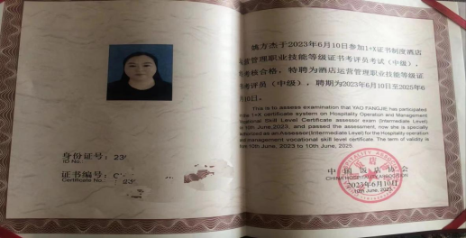 為貫徹《國家職業(yè)教育改革實施方案》精神,落實“學歷證書+若干職業(yè)技能等級證書”制度試點方案,更好的推進“1+X”證書制度試點工作,我校特組織教師參加“酒店運營管理1+X證書”培訓學習。姚方杰老師精心規(guī)劃了學習計劃,并順利的完成了本次的培訓任務,考核優(yōu)秀。