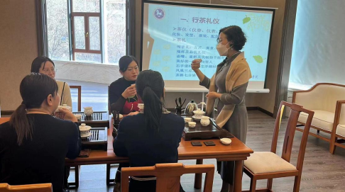培訓(xùn)課上,崔紅教授通過(guò)理論教學(xué)、現(xiàn)場(chǎng)示范、面對(duì)面指導(dǎo)等多種方式,為在座的各位學(xué)員傳授茶文化基礎(chǔ)知識(shí)、茶文化禮儀、蓋碗的使用、注水練習(xí)、茶藝動(dòng)作分解、茶藝實(shí)操練習(xí)等內(nèi)容,讓大家在動(dòng)手實(shí)踐中感受茶文化的魅力。
