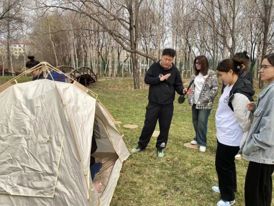 為提高學生戶外知識素養(yǎng),增強戶外技能,4月24日,旅游商務學院2022級森林生態(tài)旅游與康養(yǎng)專業(yè)學生于伊春市伊美區(qū)木雕園開展了戶外帳篷搭建實踐課程。