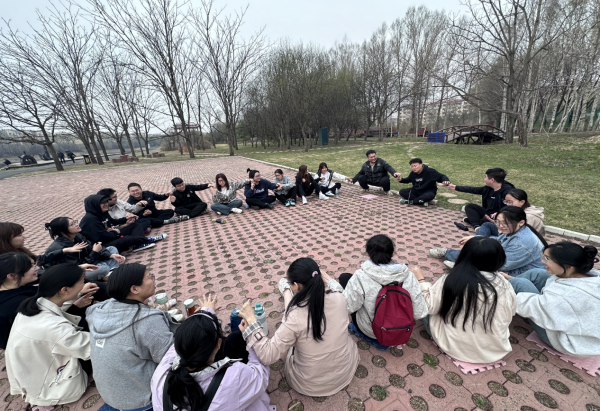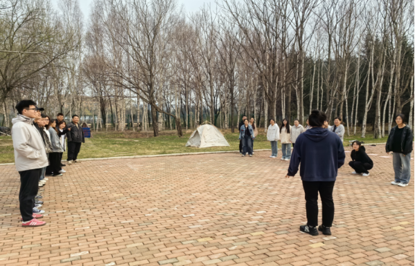 為調(diào)動大家對戶外旅游學習的積極性,學習開始前,王森老師先組織了學生開始戶外團建小游戲,挑選了一名同學進行游戲組織實踐體驗。