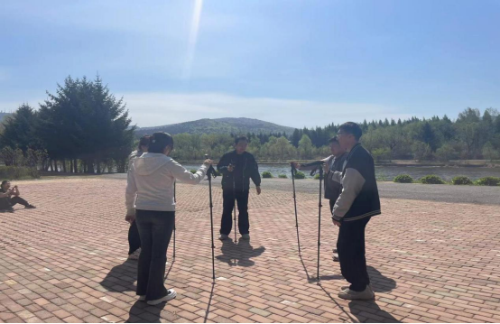 當(dāng)天上午8點(diǎn),大家根據(jù)通知內(nèi)容帶上所需物品在學(xué)院教學(xué)樓一樓集合,所有人在我院王森老師的帶領(lǐng)下來到了木雕園。到達(dá)木雕園后,王森老師給同學(xué)們講解了登山杖的種類以及正確使用方法。