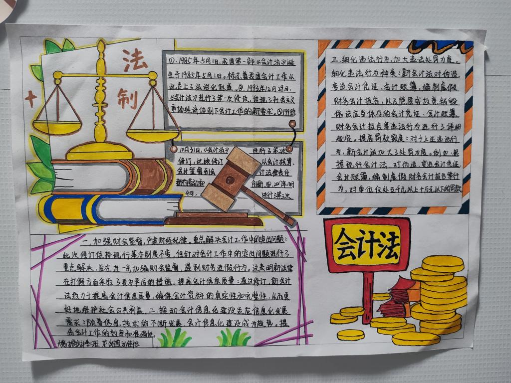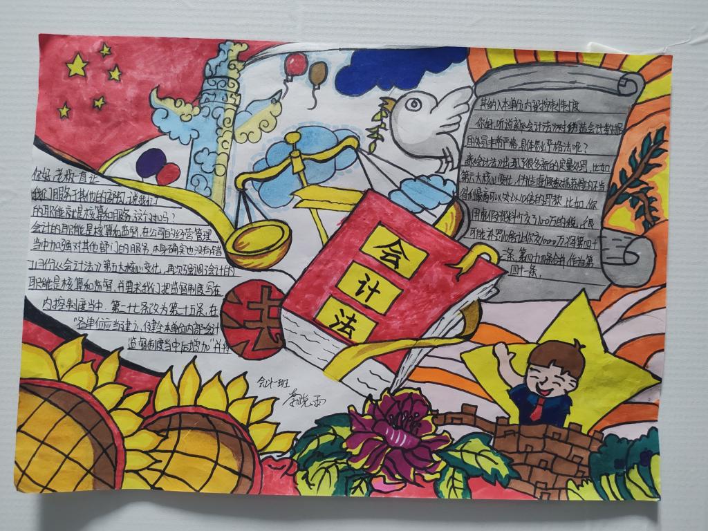 在梁老師的組織下,會計專業(yè)學生開展了手抄報繪制活動。通過手抄報繪制,學生們不僅鞏固了所學知識,還加深了對《中華人民共和國會計法》的理解和應用。活動現場氣氛熱烈,同學們積極參與,收獲頗豐。