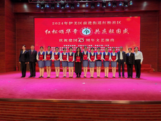 9月26日,伊春市伊美區(qū)前進街道紅松社區(qū)舉行了慶祝中華人民共和國成立75周年文藝演出。此次活動不僅是對新中國輝煌歷程的深情回顧,也是對社區(qū)內(nèi)杰出貢獻者的表彰與致敬。伊春職業(yè)學院旅游商務學院積極服務地方發(fā)展,選派10名經(jīng)驗豐富、服務禮儀功底扎實的學生,在王廷、賈璇老師的帶領下,為本次活動提供了全程禮儀服務。