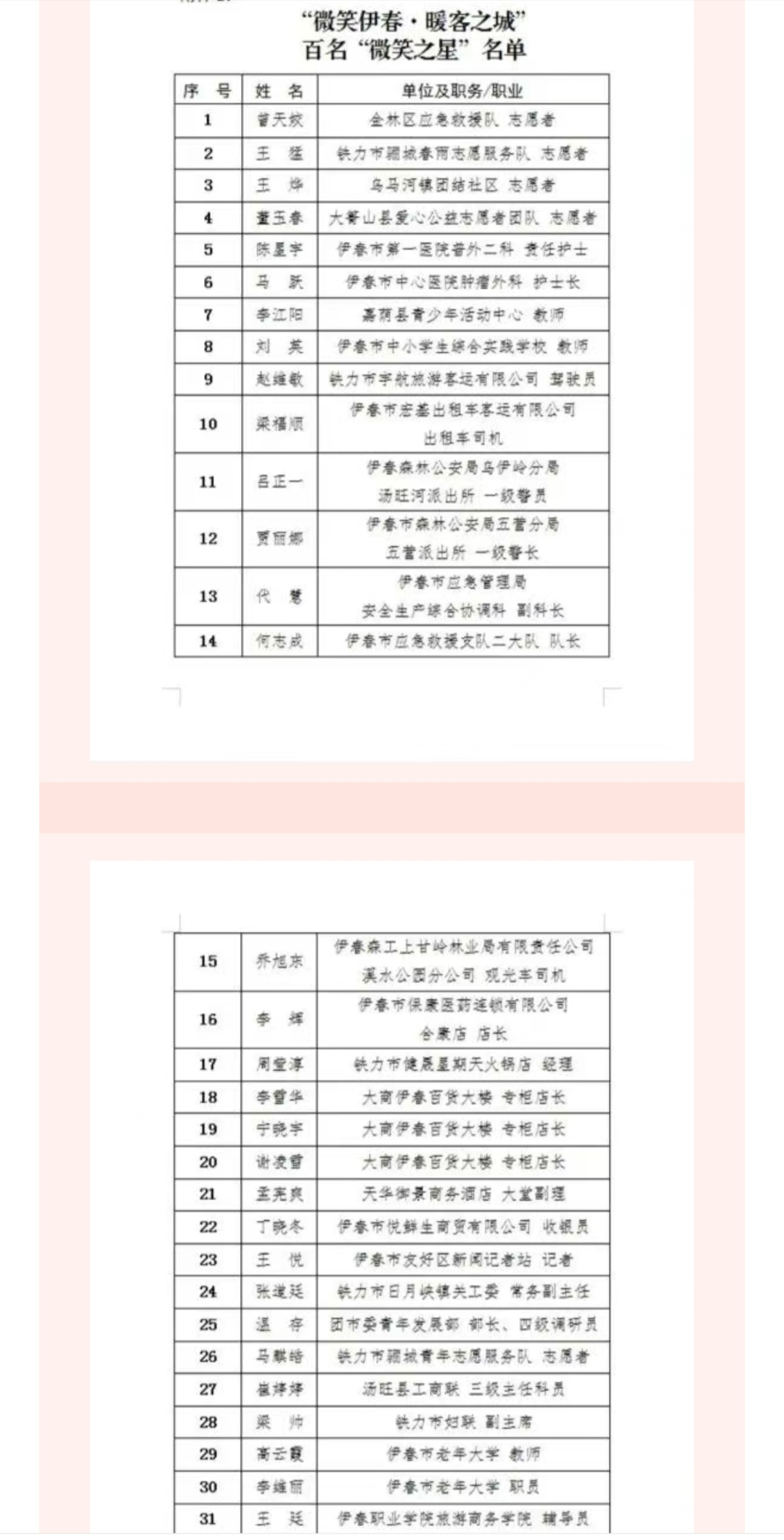近日,伊春市“微笑伊春·暖客之城”百名“微笑之星”評(píng)選結(jié)果揭曉,旅游商務(wù)學(xué)院教師王廷和2023級(jí)森林生態(tài)旅游與康養(yǎng)專業(yè)學(xué)生孟思彤成功入選,榮獲“微笑之星”稱號(hào)。