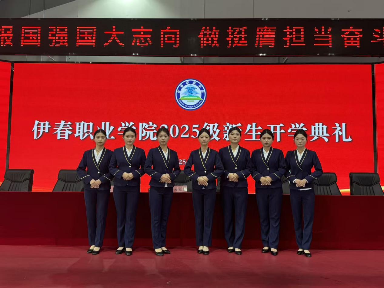 10月30日上午,伊春職業(yè)學(xué)院2025級(jí)新生開(kāi)學(xué)典禮隆重舉行。旅游商務(wù)學(xué)院教師王寶才、白天達(dá)帶領(lǐng)7名學(xué)生志愿者為典禮提供禮儀服務(wù)。